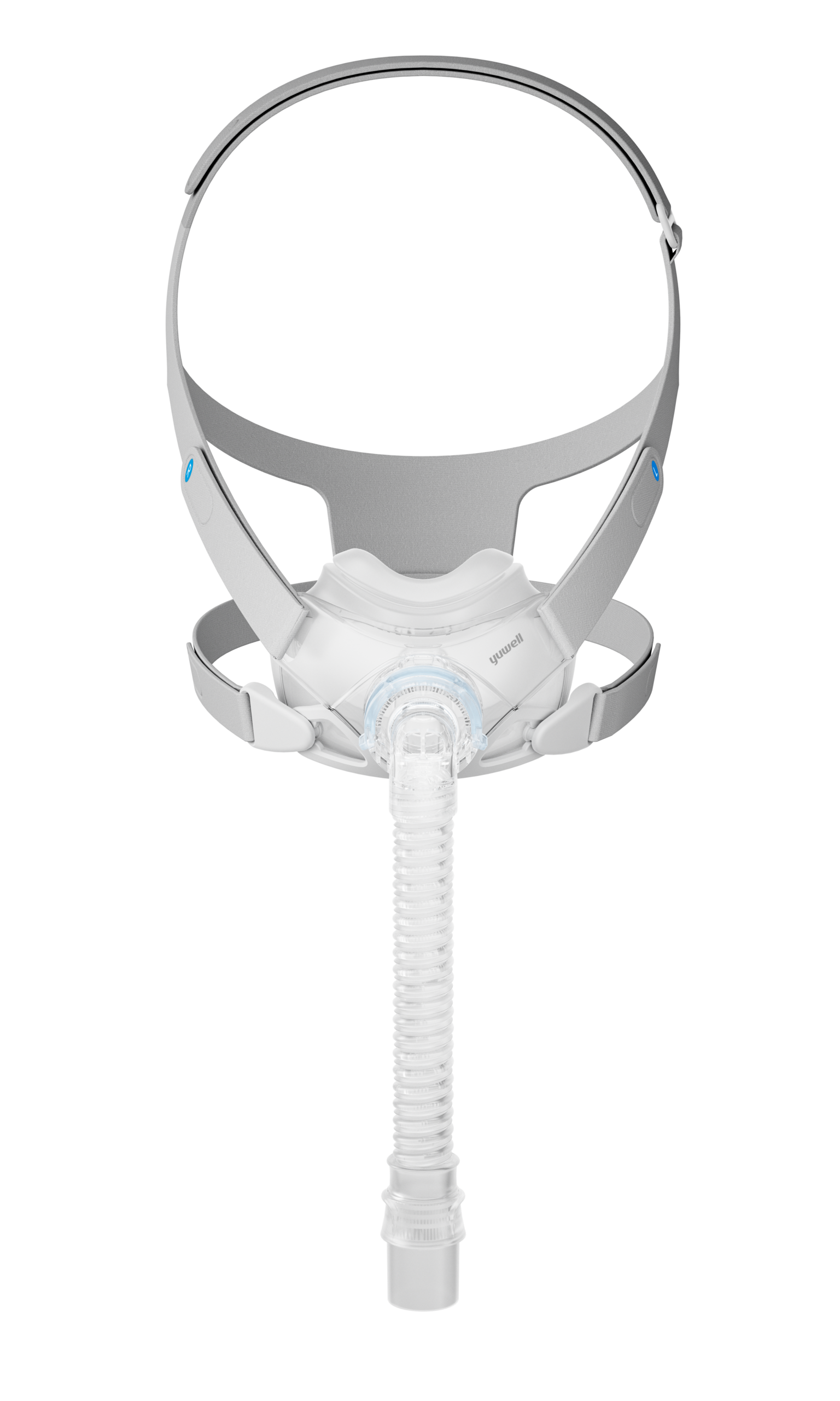 Open-frame full-face CPAP mask with under-the-nose cushion design, quiet airflow, and stable overnight fit.