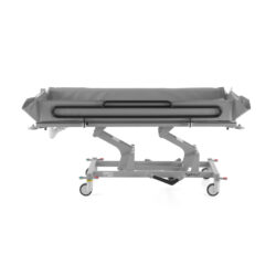 - Foldable side and front rails for patient safety and easy transfer access.
