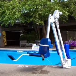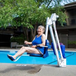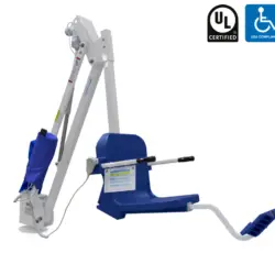 The ADA Compliant, UL Certified, Mighty 400 pool lift is an entirely new way to look at pool lifts. The unique patented design combines the sturdiness of the Pro Pool Series lifts with the versatility of our Revolution series lifts. By itself the lift is ideal for in-ground pool and spa applications but with the addition of any of the available pedestal options, the lift can clear up to 48-inch high walls. The Mighty has the longest reach of any of our lifts and can reach out across the pool deck by as much as 44-inches. Whisper quiet and simple push button operation make this lift incredibly easy and enjoyable to operate.