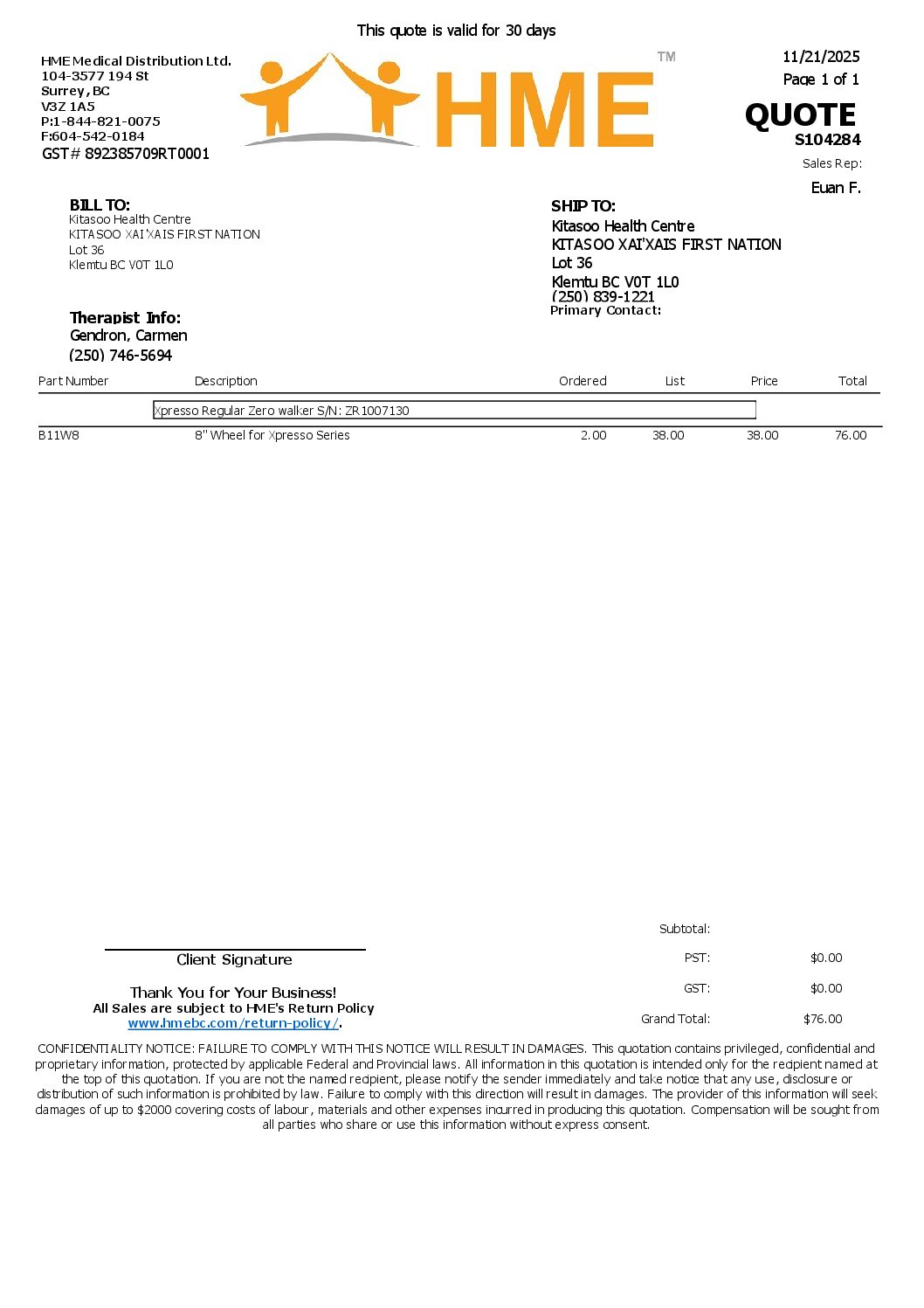Call 1-844-821-0075 and request details about the Protected: S104284 – Kitasoo health centre.